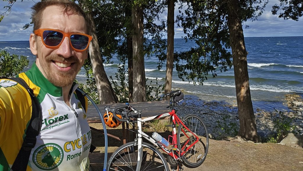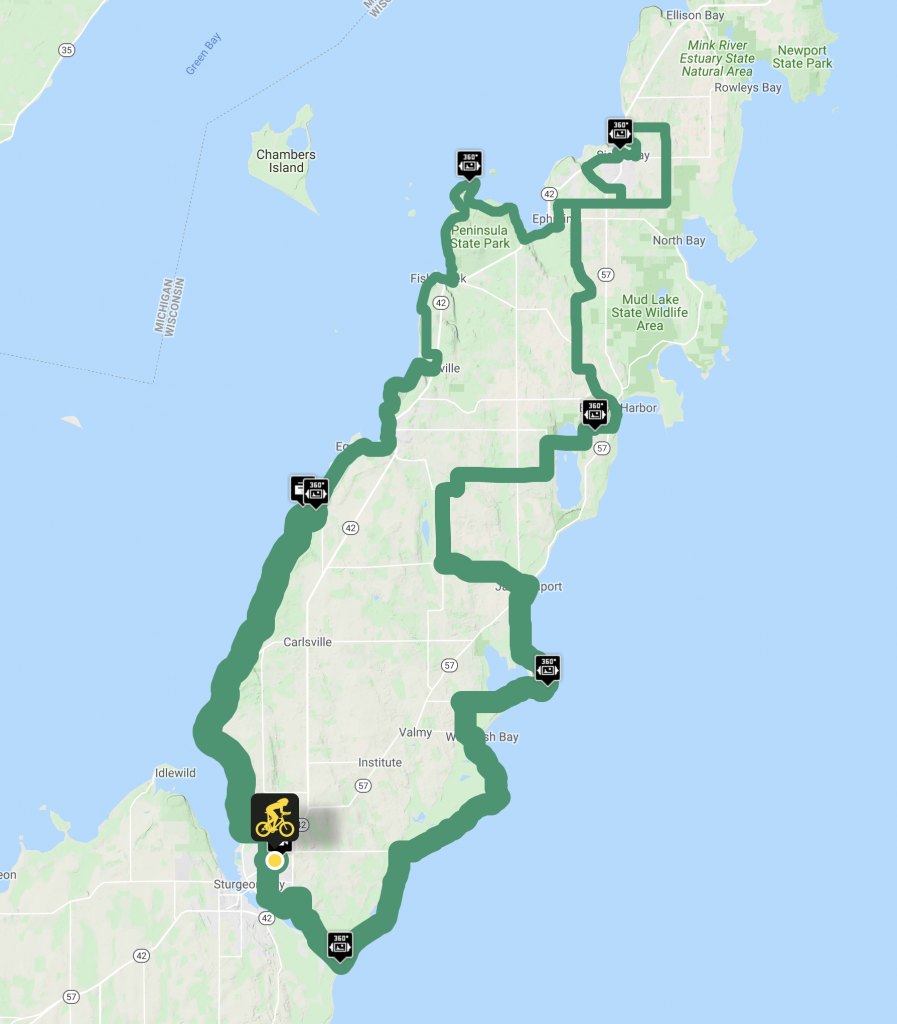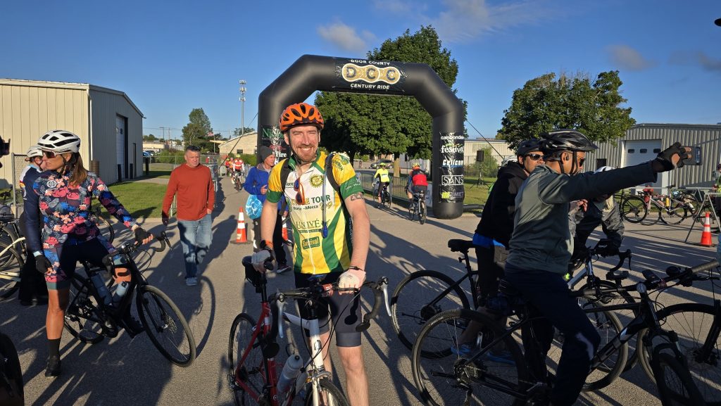Right around that point there, a young woman who I’d passed, and been passed by, a few times in the previous few hours started chatting with me. Her name was Dawn, and she’d been biking the route with a friend of hers but then that friend started to not feel well, so she took one of the shorter loops (oh yes I didn’t mention; you can also do 30, 50, or 70 mile route options, it’s not just 100 miles) and ended early and now Dawn was by herself. As naturally chatty and gregarious as I am, Dawn and I bantered about biking; bikes and routes (she’d done many century rides before, but she was a relative newcomer to Wisconsin, working for Milwaukee Tool as an engineer and had never been to Door County before) and just generally enjoyed each other’s company through the final stretches. She was a mere 25 years old and filled with energy, good vibes, and positivity.