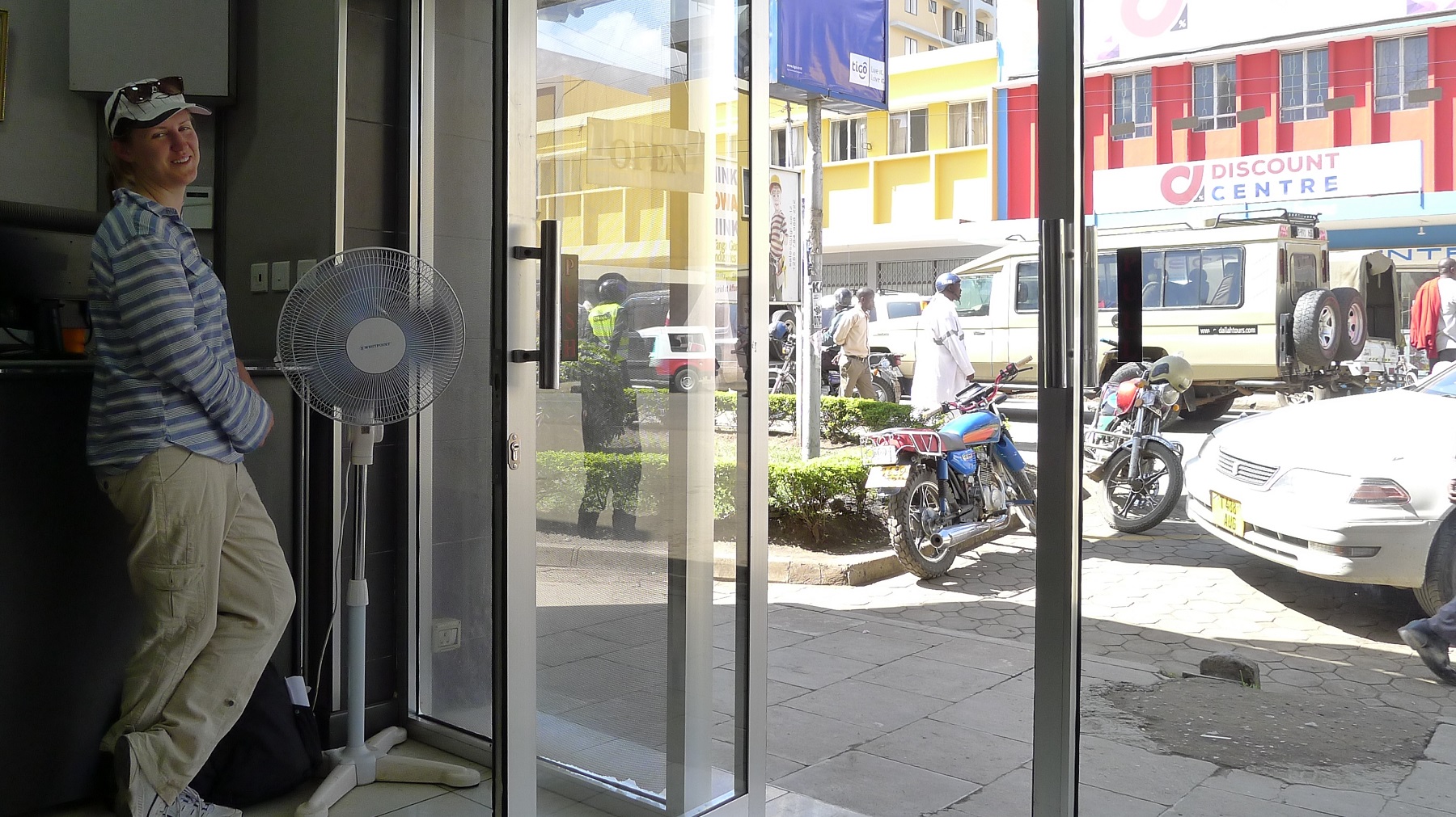 John gushed over Christine’s new kitenga, which she wore around herself as a skirt. “When I see this on you, I think you are a real African! I want to make something for you both, free of charge – a dress for Christine, and a shirt for Zach, in the African style. If you wish, we can stop by Mahu’s store and you can buy fabric, then I will measure you and make the clothes tonight, ready for our hike tomorrow.” We agreed that this was even better than a Tanzanian soccer jersey and bought the fabric from Mahu’s daughter Lillian, a cute, shy 13 year old running her father’s shop under the light of a single bare LED. It was tough to see the colorful patterns in the evening darkness and a single LED, but we managed, and selected a fabric roll with enough material to make a matching dress and shirt. John pulled his trusty measuring tape from his pocket, swiftly took our dimensions, and we parted ways until the morning.